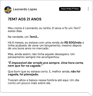 Toda a estratégia e metodologia ensinadas e transmitidas no programa são chanceladas por ele, que possui mais de 10 anos de experiência no campo de batalha e já transformou a vida de muitos alunos, os quais hoje alcançam faturamentos de 6, 7 e até 8 dígitos em apenas 7 dias consecutivos.